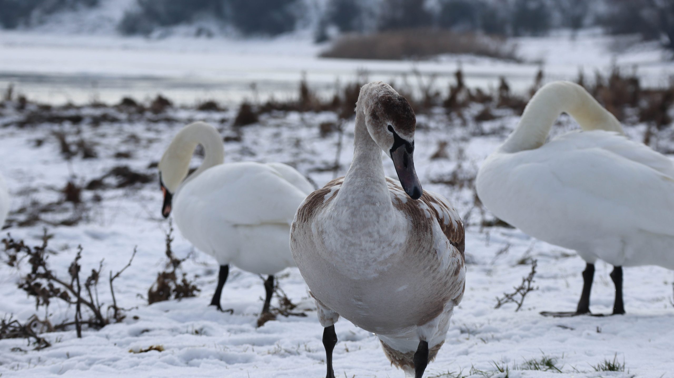 Ornitologii precizează că lebedele, la fel ca alte păsări sălbatice, sunt perfect capabile să-și găsească singure hrana chiar și în sezonul rece. Acestea se hrănesc în special cu plante subacvatice, care nu sunt foarte bogate în calorii, motiv pentru care păsările sunt nevoite să se deplaseze constant și să zboare de la un lac la altul în căutarea hranei.