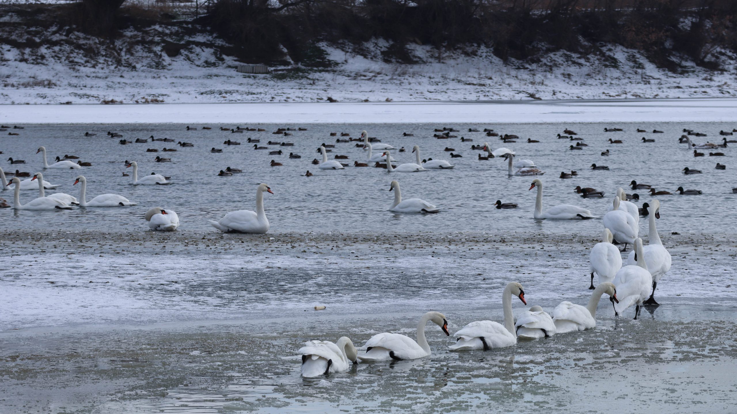 Au ales să ierneze în Moldova: lebede și rațe, surprinse pe Nistru, la Sănătăuca