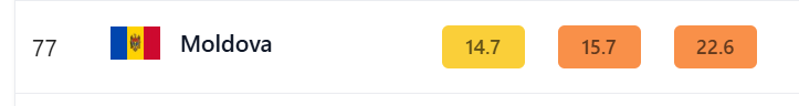 Deși se situează între România (locul 66, cu o medie anuală de ~15,3 µg/m³) și Ucraina (locul 101), valorile din regiune depășesc de două până la trei ori limita recomandată de Organizația Mondială a Sănătății (OMS), care este de 5 µg/m³.