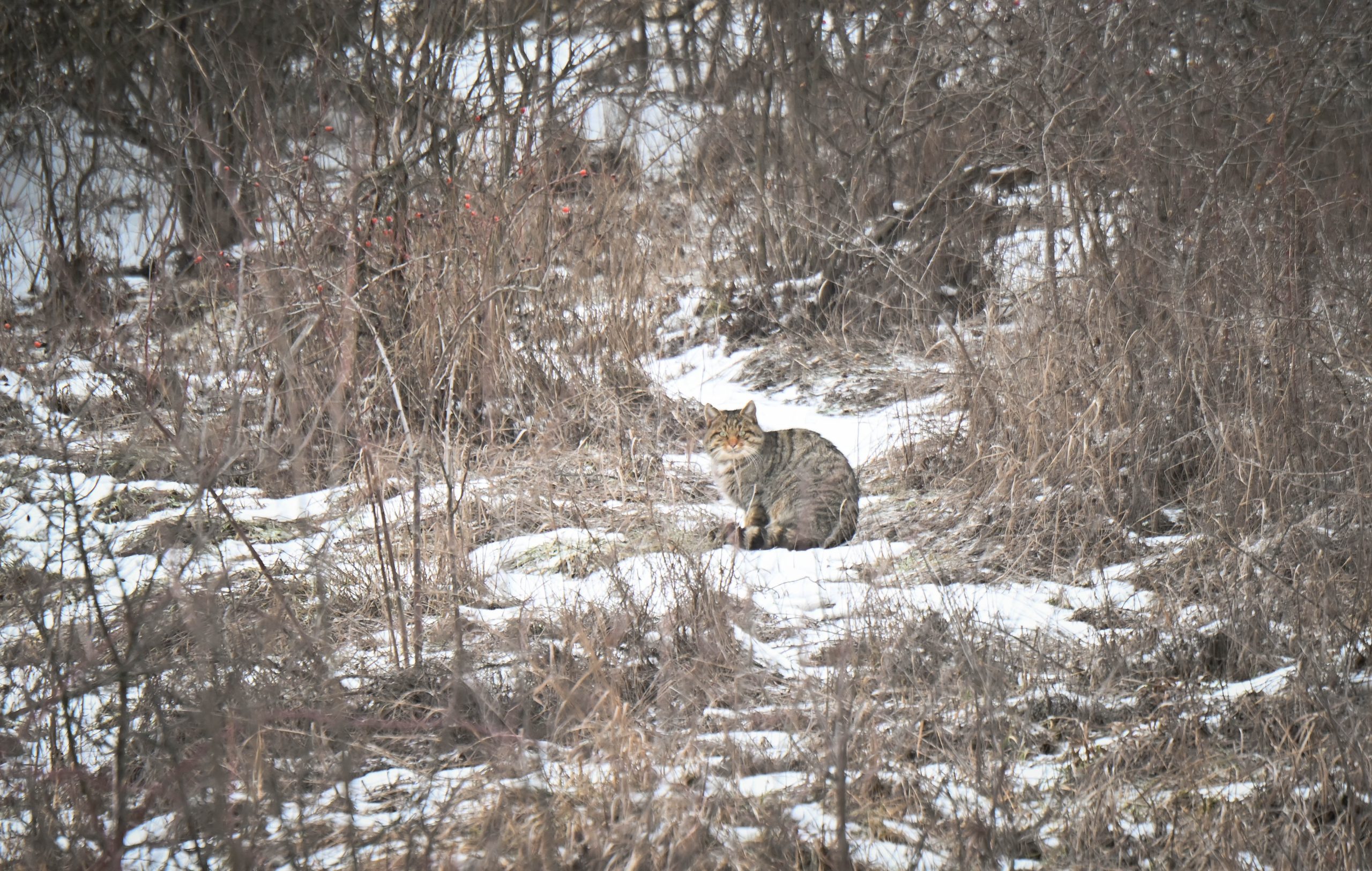 „Pisica sălbatică trăiește permanent în rezervația noastră, deși este un animal foarte rar. Îi găsim urmele periodic în timpul inventarierii faunei. Totuși, este foarte precaută, iar ultima observare directă a acestui animal a avut loc la începutul anului trecut. În total, pe teritoriul rezervației trăiesc 3-4 pisici sălbatice.”