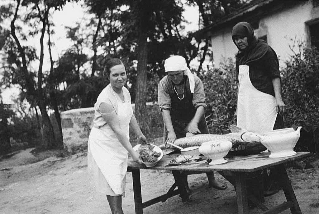 Fotografii din perioada interbelică, încă accesibile în arhive online, arată localnici cu pești uriași pregătiți pentru consum. Pescuitul sturionilor nu era o raritate, ci parte din realitatea cotidiană a fluviului.