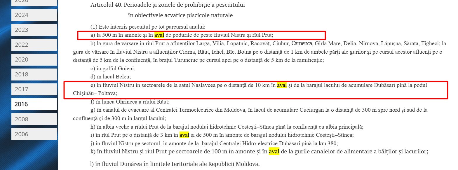 „La 7 mai 2025, în urma pescuitului ilicit cu ajutorul jupuitorului, a fost prins un morun (Huso huso) de peste 1,5 m lungime, la aproximativ 300 m în aval de barajul Dubăsari.”