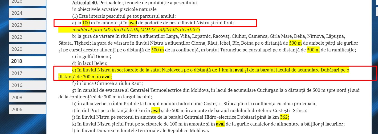 Sectoare importante de pe Nistru, unde sunt boiști ale sturionilor, au fost scoase de sub protecție, după cum atenționează oamenii de știință acum șape ani, prin modificarea Legii fondului piscicol (nr. 149/2006). Legiuitorii au redus limita de protecție în aval de barajul Dubăsari de la 500 m cum era inițial, la 300 m. Cazul morunului prins în 2025 indică faptul că peștele a fost capturat dincolo de limita actuală de protecție. Important de spus că, prin Convenția de la Berna la care este parte, Republica Moldova se obligă, de ex., să protejeze habitatele critice pentru reproducere și migrațiune; să prevină degradarea boiștilor și fragmentarea rutelor de migrație.