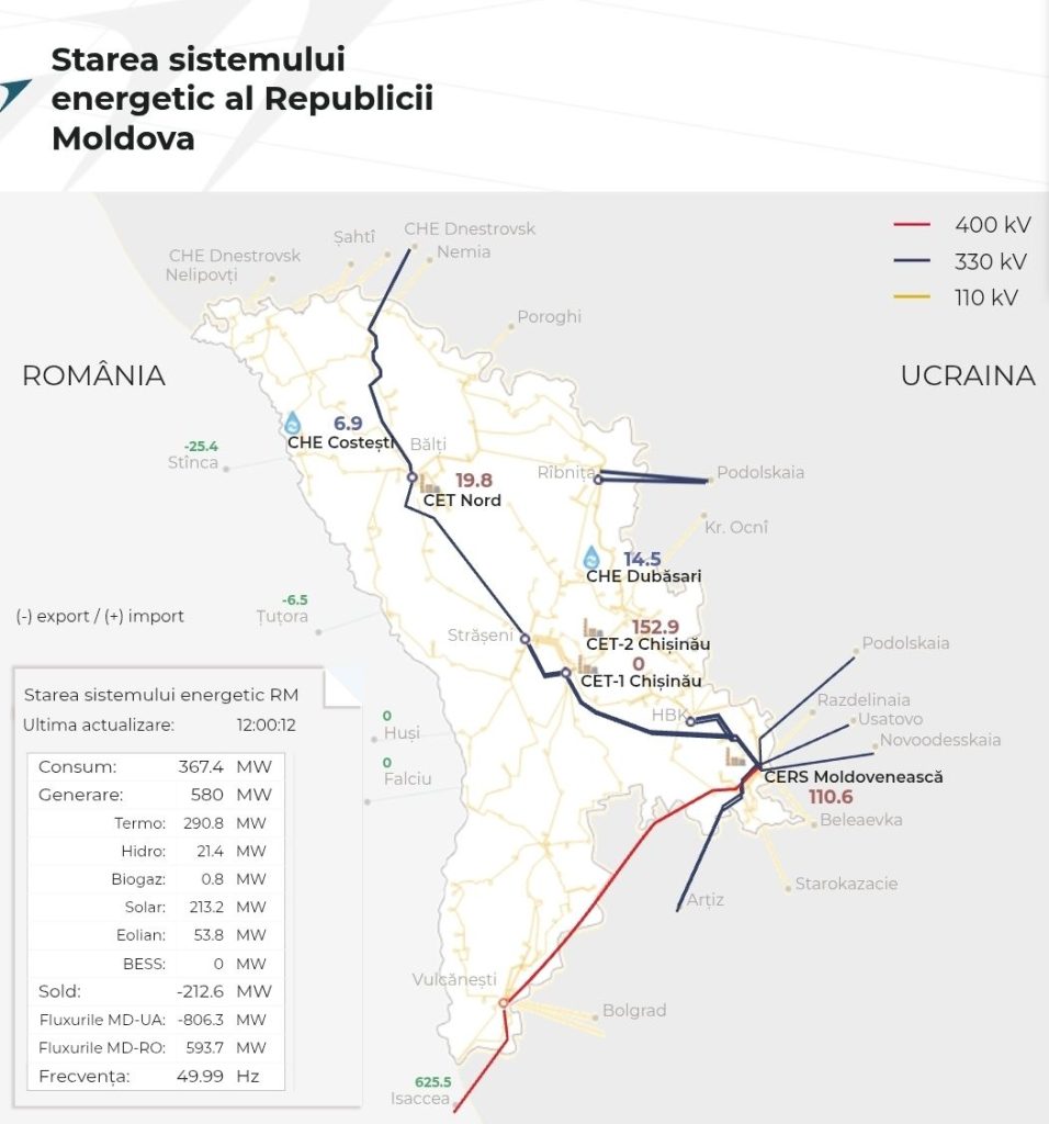 Potrivit autorităților, la această oră producția de energie regenerabilă a depășit generarea centralelor termoelectrice și a fost de aproape trei ori mai mare decât cea produsă de Centrala Electrică Moldovenească.